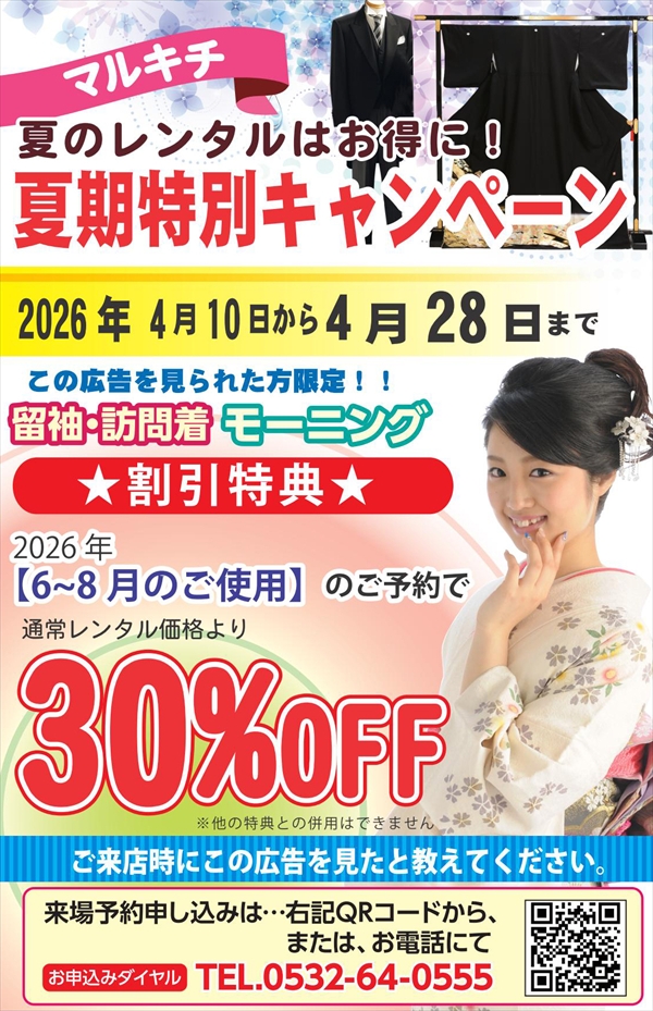 夏期ご利用の留袖・モーニングがお得にレンタル!